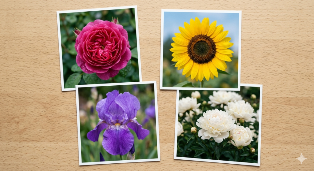今、私の手元には4枚の花の写真があります。